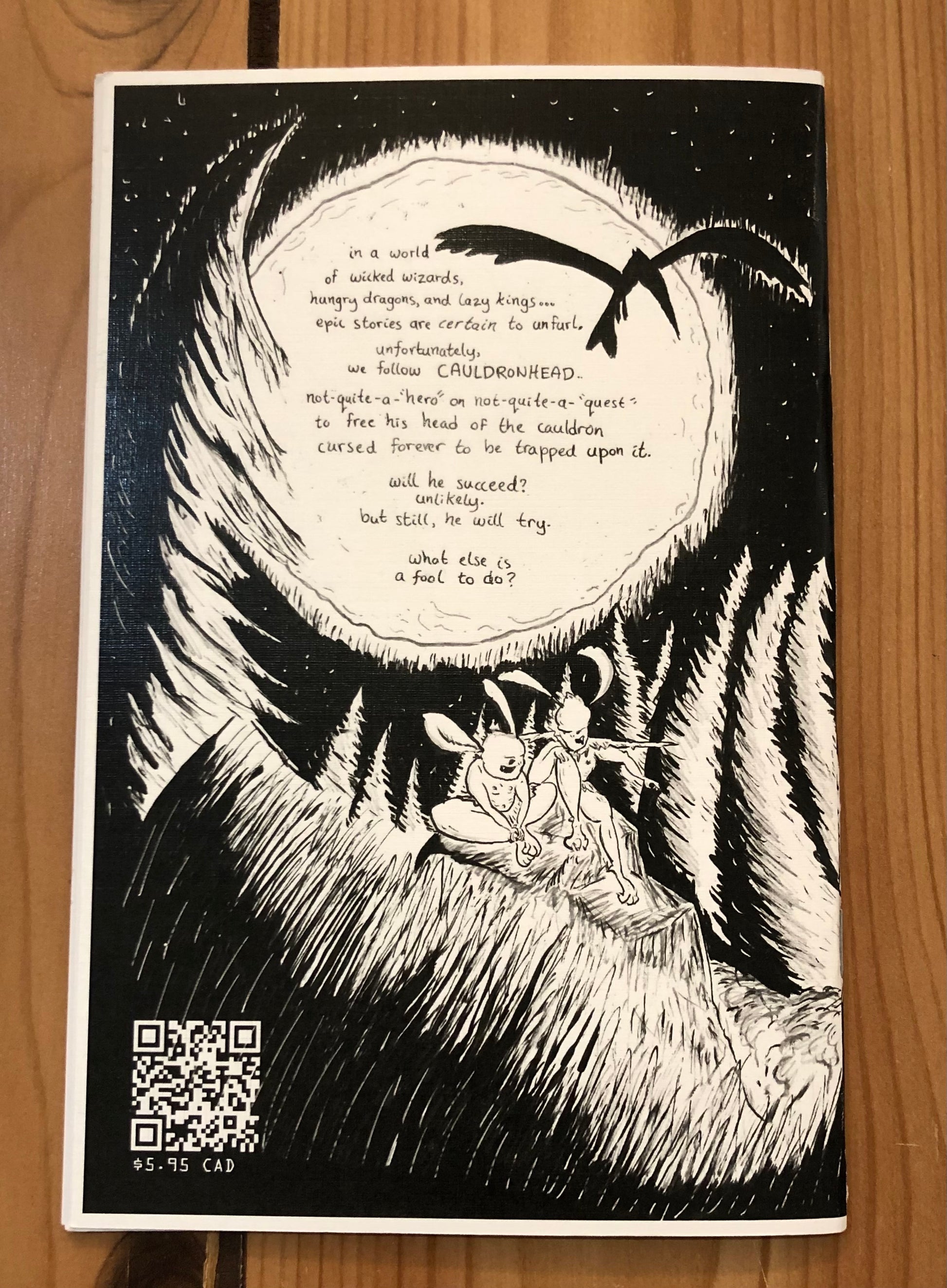 Not-quite-a-"hero" on not-quite-a-"quest" to free his head of the cauldron cursed forever to be trapped upon it.
